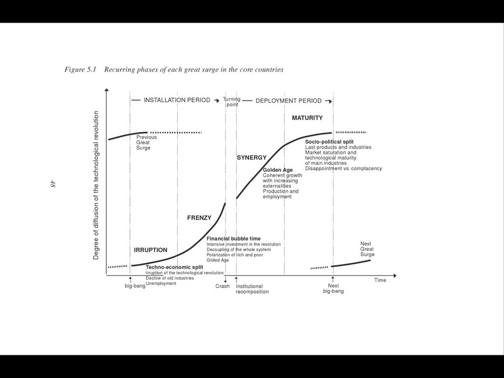 Technological Revolutions and Financial Capital: The Dynamics of Bubbles and Golden Ages is a hugely-influential book by Carlota Perez that suggests a connection between technological development and financial bubbles. which can be seen in the emergence of long term technology trends. She explicates her model by tracking repeated surges of technological development over the past three centuries, from the Industrial Revolution to the Information Age.