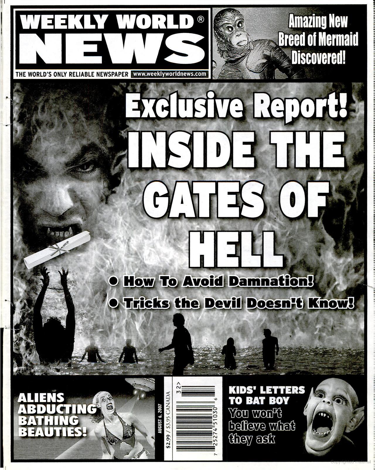 Readers can visit Google Books for a survey of Weekly World News covers through the years (and can click through to read each issue)– news that’s unique in the marketplace, news that no one else had… news that was available at the check-out stand– and on paper.