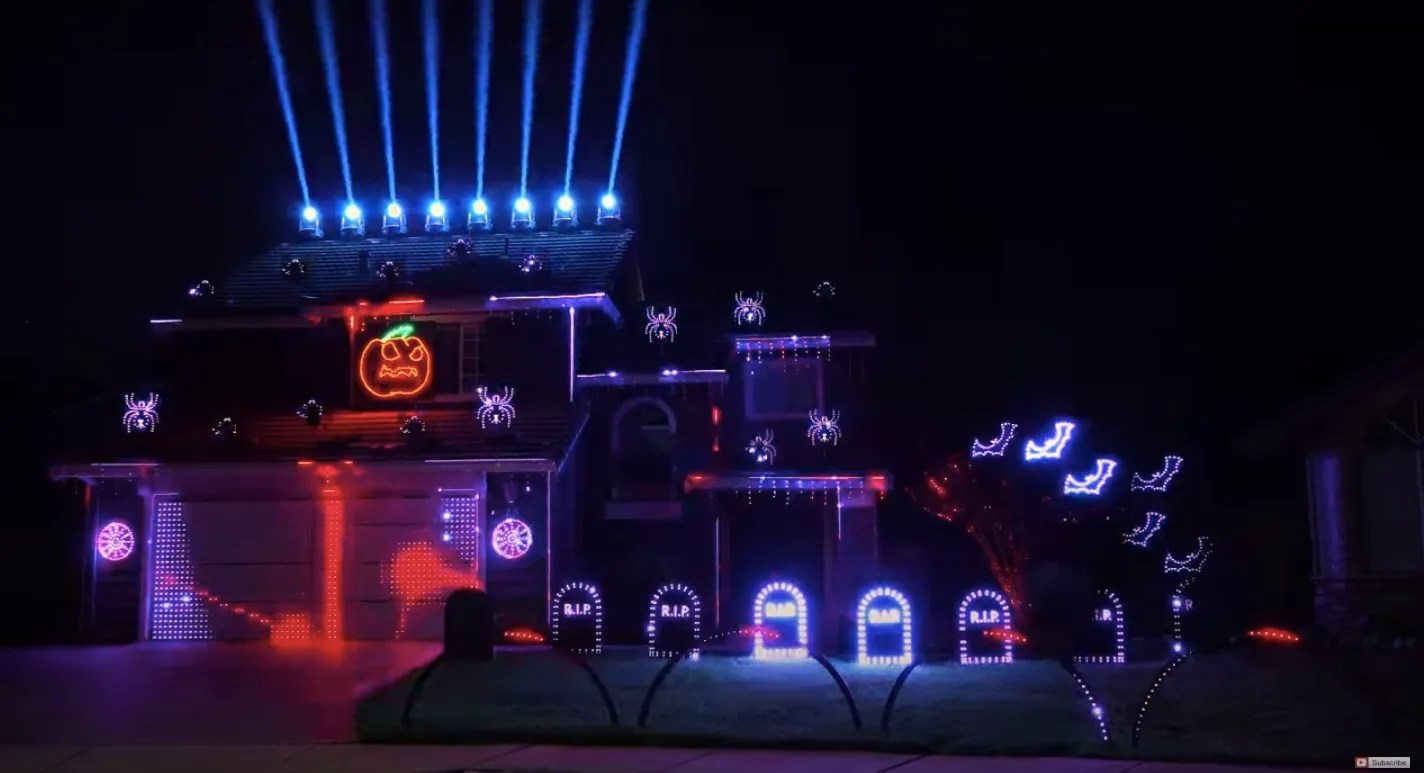 Tom BetGeorge, professional light show artist, is showing his amazing haunted light show in real life, using his house as the backdrop.